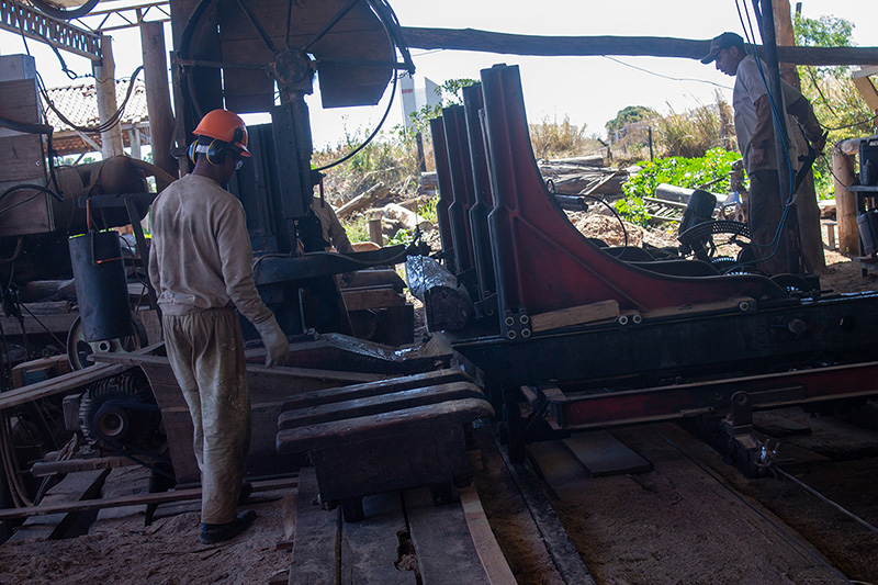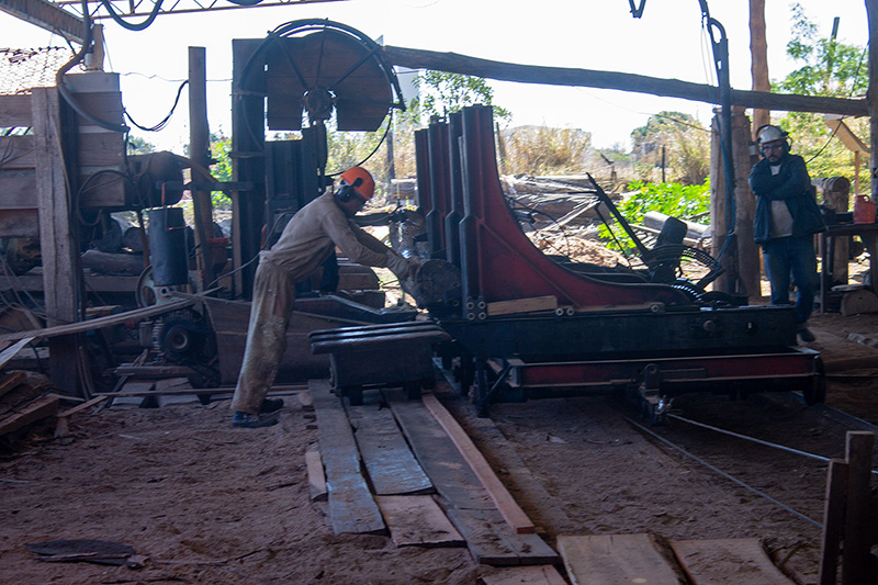 Ínicio do corte do tronco em tábuas